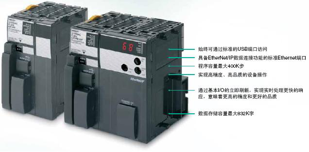要在設備制造業引領風騷,您需要不斷滿足終端用戶的需求。縮短生產周期、實現更優異的質量管理和更精密跟蹤能力需要更快的速度和更高的容量。因此,CJ2系列提供了多樣化CPU來滿足各種任務需求。從5K步程序容量、64K字存儲容量起,至高達500K步程序容量、832K字存儲容量,均可提供。